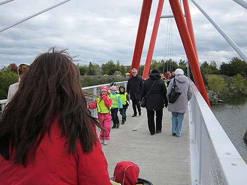 Мост через пруд на месте бывшего карьера соединяет Семейный парк с Горным и позволяет попасть из квартала Паэ прямо в здание управы Ласнамяэ. Его длина – 25 м, а ширина – 3 м. Перила и пилоны моста будут подсвечиваться в темное время суток. Кроме моста на пруду также открылся фонтан с подсветкой.
