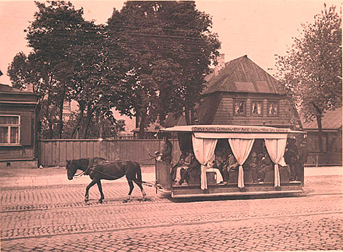 Конка Первый конный трамвай ходил по маршруту Русский рынок (площадь Виру) – Екатериненталь (Кадриорг). Девять летних вагонов прибыли из Петербурга, в них заходили сбоку через раздвижные двери. Вскоре раздвижные двери заменили свисающие с потолка до пола занавеси. Через пару месяцев линию конки продлили по Глиняной улице (ныне ул. Виру) до Старого рынка. Прибыли и 10 «зимних вагонов» с закрытым салоном. В сентябре 1888 года открылось трамвайное движение по Большой Юрьевской улице (ныне Тартуское шоссе). В 1899 году была продолжена линия конки по Нарвской улице в сторону Пирита. Она была разобрана во второй половине 1920-х годов за ненадобностью, поскольку к этому времени здесь наладилось регулярное автобусное сообщение. Весной 1901 года конка пошла по Большой Перновской. Для движения по этой линии было приобретено еще шесть закрытых вагонов из Кёнигсберга, которые продолжили возить пассажиров в Ревеле под теми же номерами (25-30). В 1914 году конка работала с 7 часов (зимой с 8) до 23 (зимой до 22). Частота движения летом составляла 5 минут, зимой – 10 минут. Цена проезда – 5 копеек. Конный трамвай просуществовал у нас до 1918 года.
